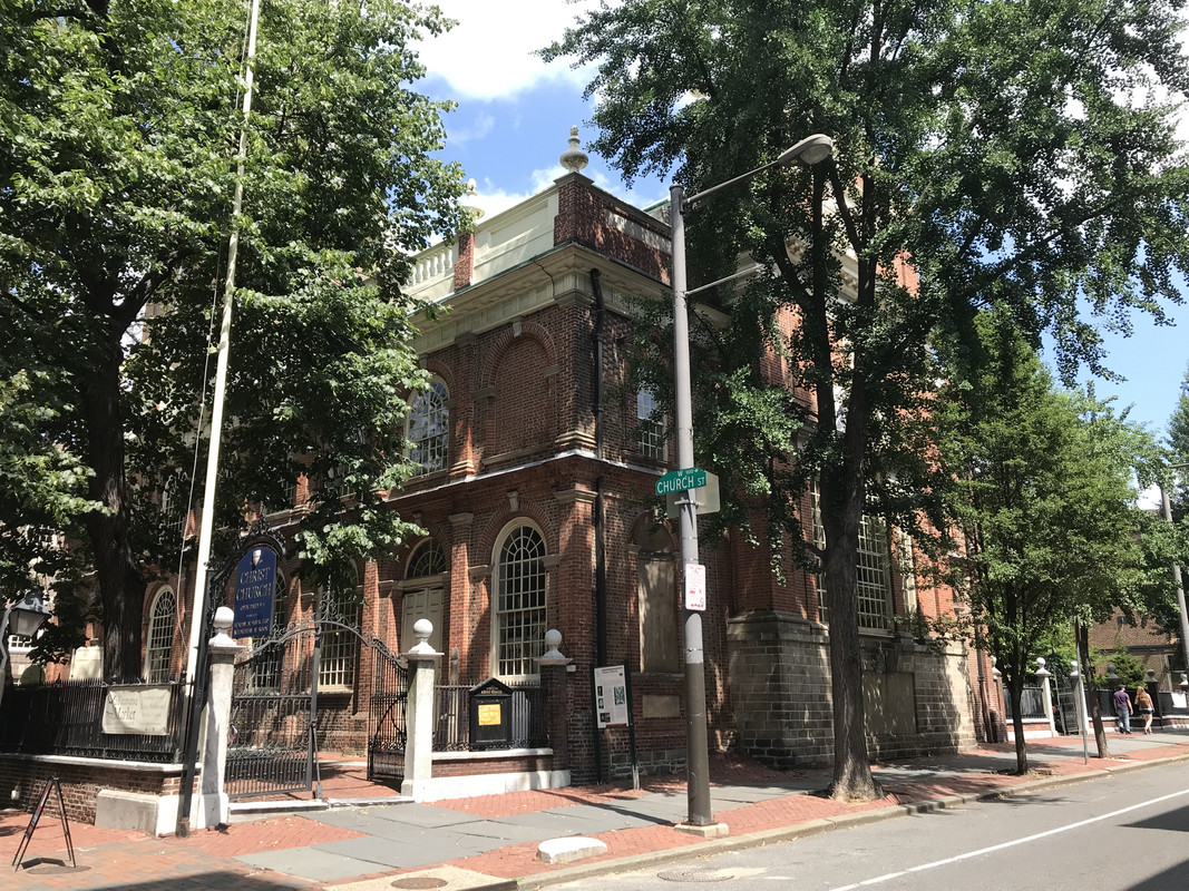 Christ Church es el lugar de nacimiento de la Iglesia Episcopal Americana. Se fundó en 1695 como una condición de la Carta de William Penn. Conocida como «La Iglesia de la Nación», acogió a miembros del Congreso Continental durante la Revolución Americana. También acogió a los presidentes George Washington y John Adams en la primera década de la recién establecida República.